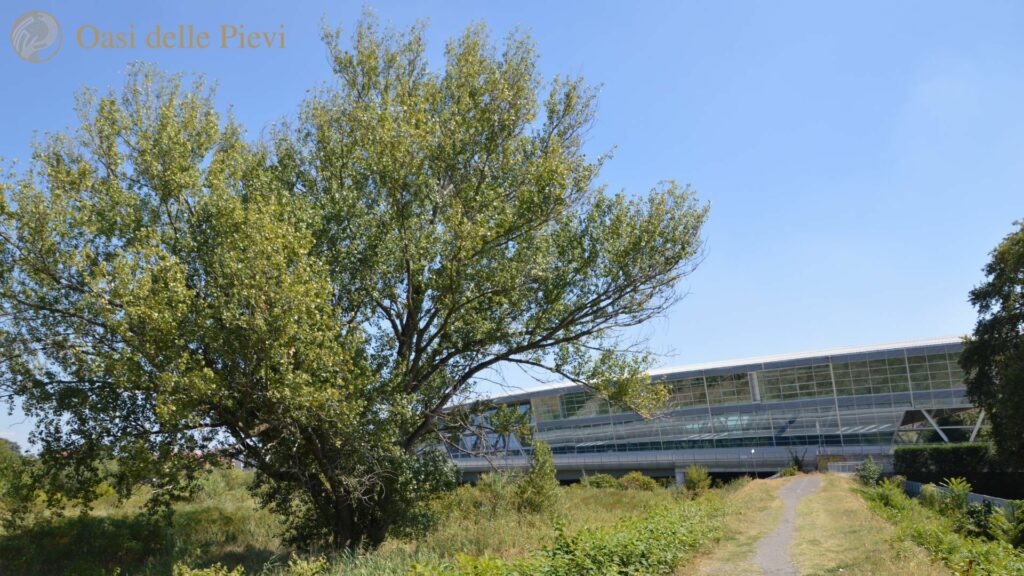 L’ultimo step dell’itinerario appartiene ad un albero dal carattere forte e combattente, superstite di mille battaglie: il Pezzo Grosso, pioppo spontaneo vicino al centro e resistito a tante alluvioni del torrente Parma. Lui è lì, in prima fila davanti a tutti, a guardare la Parma “voladora” d’inverno e i ragazzi che giocano a calcio d’estate nei campetti a fianco. Non sappiamo chi l’ha piantato e perché. Forse è nato da solo tanti anni fa, oppure voluto da qualcuno che nell’alveo del torrente coltivava un piccolo orto. Ha sicuramente osservato tutte le vicissitudini del Ponte Nord, costruzione realizzata dall’architetto Vittorio Guasti e inaugurata nel 2012, ma che ha avuto subito uno stop normativo a causa dell’impossibilità di utilizzare in modo permanente un edificio costruito sopra un ponte. Oggi sembra essere arrivata una deroga: dopo quasi 10 anni di completo inutilizzo, può diventare la sede dell’Autorità Distrettuale del Fiume Po e il terzo ponte “abitato” d’Italia, dopo Ponte Vecchio e il Ponte di Rialto. Questo pioppo nero è il più grande della provincia di Parma come circonferenza: la sua posizione in prossimità del fiume e la potatura che ha subito, lo hanno senza dubbio favorito nella crescita in larghezza