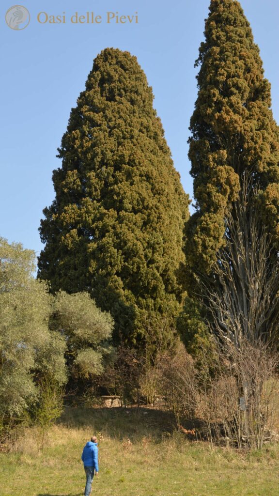 Il secondo albero monumentale è il protagonista della quarta tappa a Ozzano Taro, frazione di Collecchio. Su una dolce collina, a pochi metri dalla statale che da Collecchio porta a Fornovo, si contano oltre dieci olivi secolari e due cipressi. Di questi ultimi, uno, alto come un palazzo di dieci piani, colpisce per la sua maestosità e per il suo particolare nome: Uno Scorcio di Toscana. Verso la fine del ‘700, un tragico fatto di sangue si lega a questa pianta: pare che uno degli allora proprietari avesse ucciso il fratello, e per sfuggire all’arresto e alla conseguente pena capitale si sia nascosto per un mese sul cipresso, rifornito durante le ore notturna da una fida domestica. L’albero, come tutto il parco e la villa, si sono conservati intatti fino ai giorni nostri grazie all’amore per il luogo di Giuseppe Torracca, e oggi della sua famiglia.