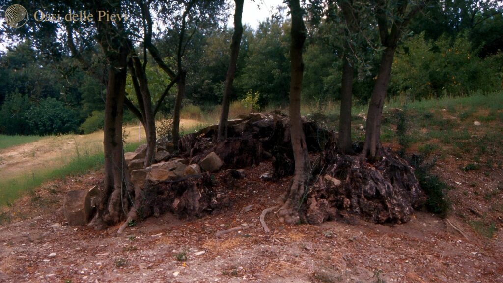 Proseguendo il percorso, si inizia l’alternanza con la natura incontrando il primo albero monumentale. Siamo a Viazzano, alle pendici del Castello di Roccalanzona, antico maniero legato alla storia gloriosa della nobile famiglia Rossi che seppe resistere a diversi assedi alla fine del 1400 esercitati dagli Sforza. Oggi ne restano solo poche rovine a ricordare gli antichi fasti e poco lontano un olivo dalle dimensioni davvero uniche, il più grande di tutta la provincia: il suo nome è il Re Autoctono. La proprietaria ricorda che il padre, agli inizi del ‘900, raccoglieva le olive e, riempiti dei sacchi, li portava in treno fino a Pontremoli per essere franti in un frantoio ottenendo l’olio. Gelò l’ultima volta nel gennaio del 1985, ma la pianta non si arrese e riemise nuovi tronchi, formando quindi da zero una nuova chioma. Durante quell’inverno, l’abbondante nevicata ne sradicò un altro identico a fianco, che ora purtroppo non c’è più. Da analisi genetiche la varietà sembra essere distinta da altre varietà italiane, anche se simile alla toscana Frantoio. Questo lascia ipotizzare che fu importata proprio da quelle terre, ma che ha saputo, in tutti questi anni, trovare una sua identità nel nostro territorio.